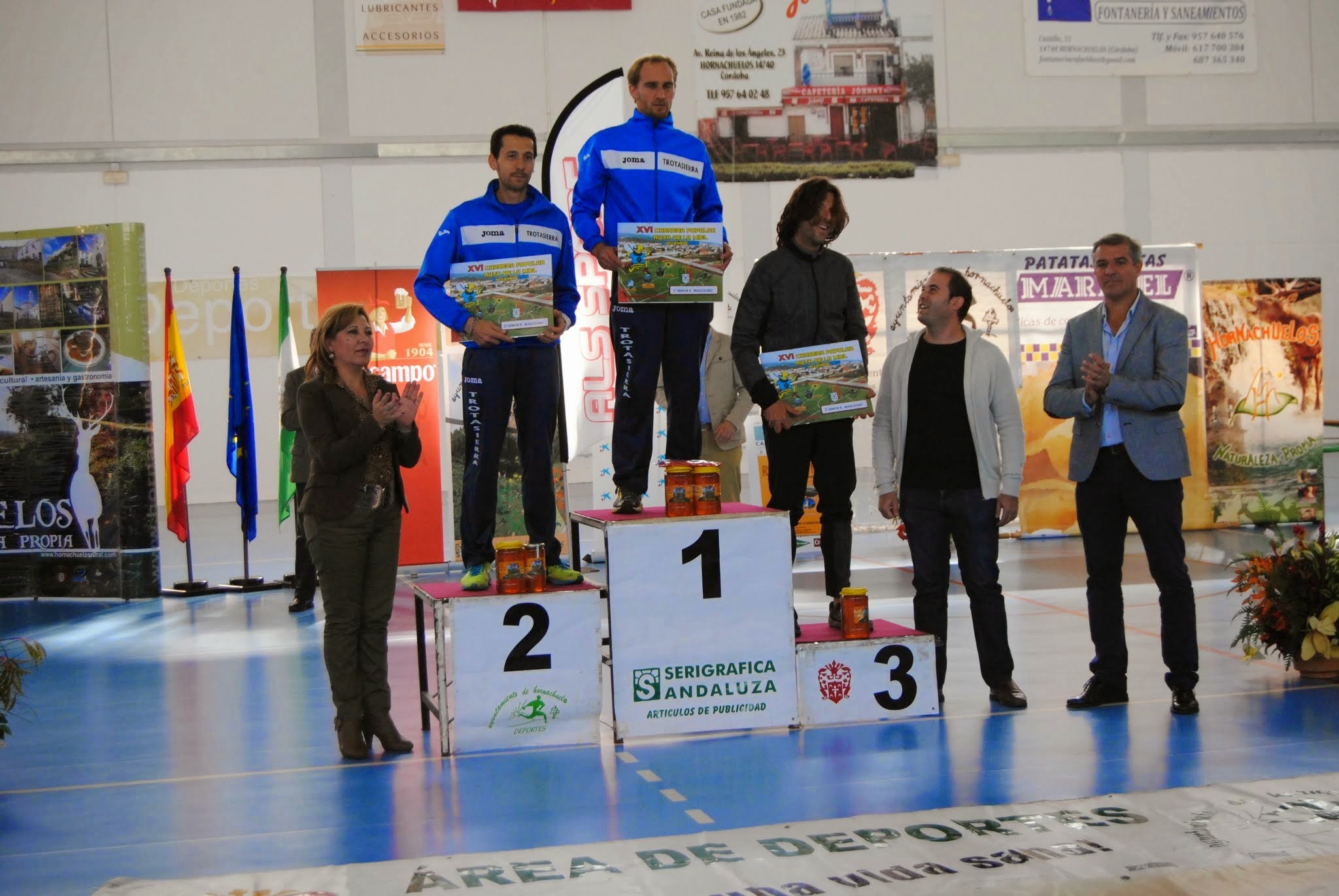 En los últimos kilómetros mirando hacia la cabeza de carrera, veía que era Ángel quien iba tirando de Bermúdez. Pensaba que esto se debía a que Bermúdez, con más experiencia, estaba dejando que Ángel fuera el que se desgastara cuesta arriba y con el aire en contra para lanzar un ataque final ya en las inmediaciones del polideportivo. Pero cuando estoy entrando en la pista de atletismo los veo a lo lejos y entraron muy cerca. Cuando pregunto a Bermúdez me dice que no se estaba guardando nada y que Ángel había estado realmente fuerte y le había puesto las cosas muy difíciles. Así que tengo que dar la enhorabuena a Bermúdez por su nuevo triunfo en la Ruta de la Miel, pues ya van tres años consecutivos y todos sabemos lo difícil que es mantenerse arriba durante tanto tiempo. Pero sobre todo a Ángel Muñoz por su gran carrera. Supo sufrir y aguantar mucho, y fue muy valiente al tirar en cabeza tanto tiempo en esas condiciones. Algo raro en alguien tan joven y en una carrera de tanta distancia. Me alegro mucho por él pues seguro que está entrenando muy duro para conseguir estos resultados y sin duda lo veremos delante en la Media Maratón de Córdoba.